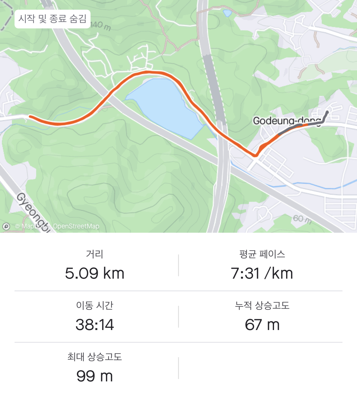 천천히 5Km를 혼자 완주했습니다.