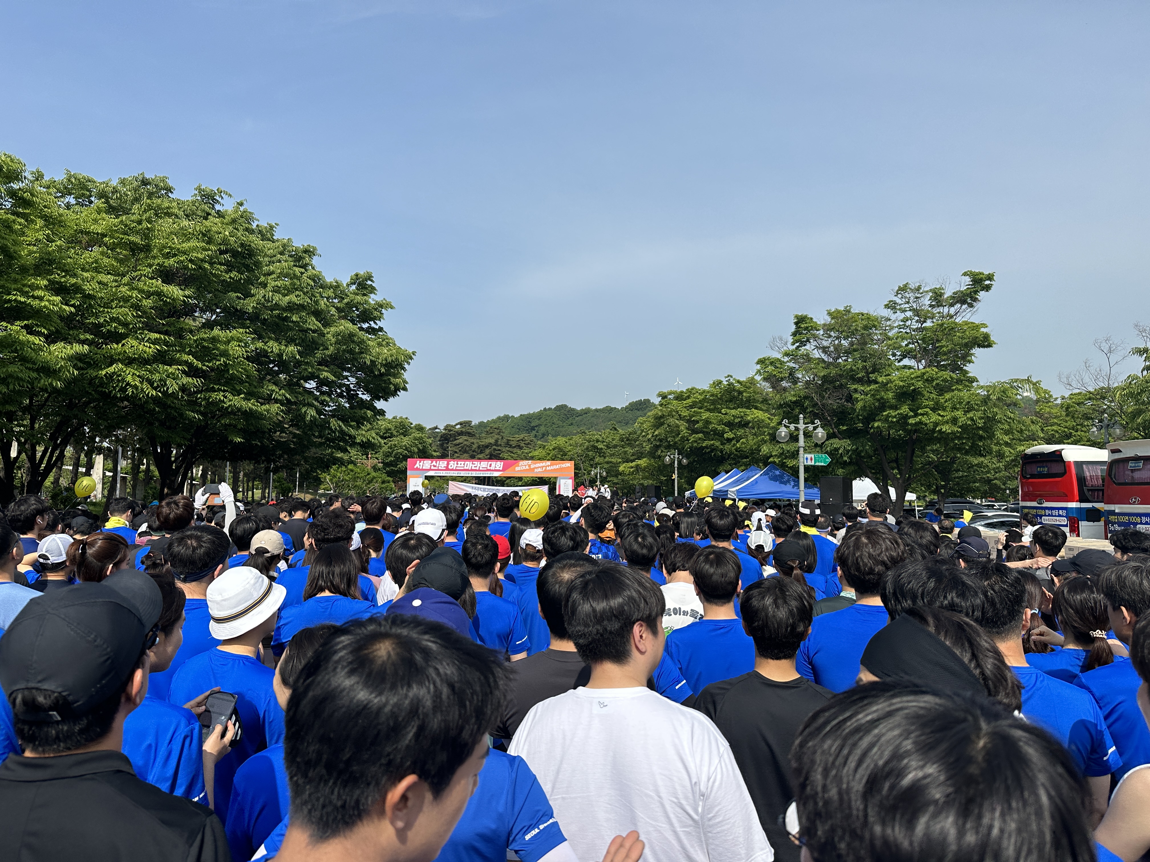 러닝날 날씨는 매우 더웠어요. 코스에 그늘이 있었지만 그쪽으로 가면 1m라도 더 걸어야 했기때문에 포기했어요.
