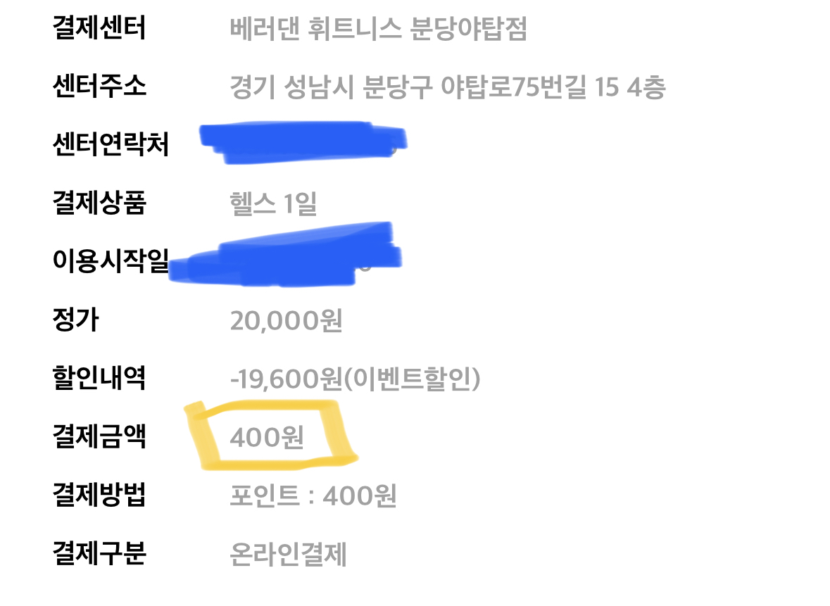현재 최초 회원 1회 400원 일일권 체험 이벤트를 진행하고 있어요.